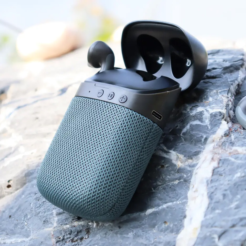 سماعة ايربودز 2 في 1 مع سبيكر مدمج تقدم تجربة صوتية مبتكرة تجمع بين الخصوصية والمشاركة. تتيح لك الاستماع بشكل فردي عبر السماعات اللاسلكية أو تحويل العلبة إلى سبيكر متنقل عند الحاجة، كل ذلك في تصميم أنيق ومحمول مثالي للتنقل.